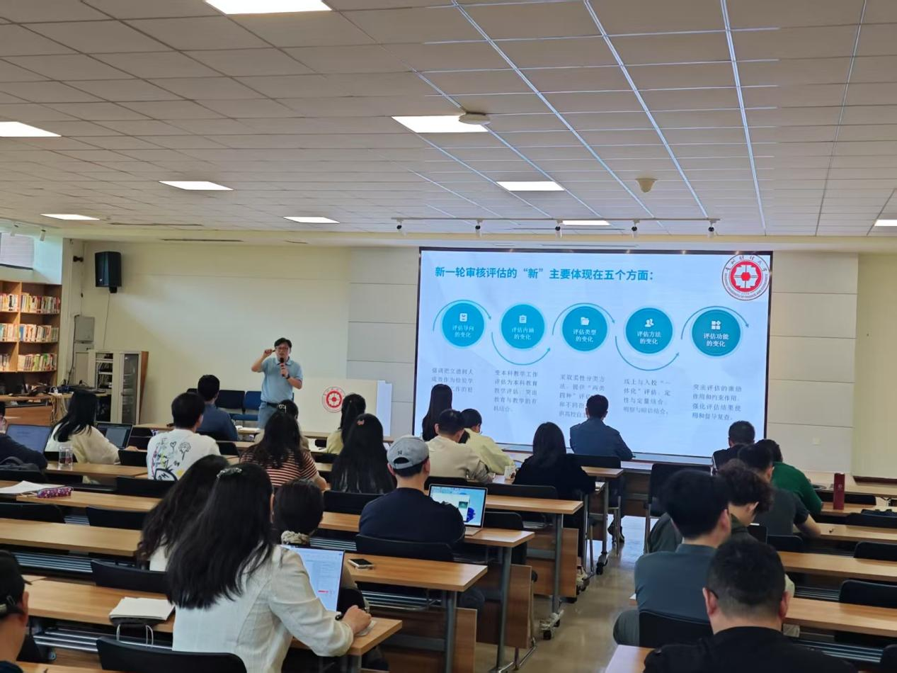 周松副院长立足新一轮审核评估的政策背景及其核心意义,系统阐释了评估指标体系、程序要点、参评类型及红线要求。同时,结合具体案例,为学院迎评工作提供了专业指导及切实可行的操作路径,有效助力学院精准把握评估关键点。