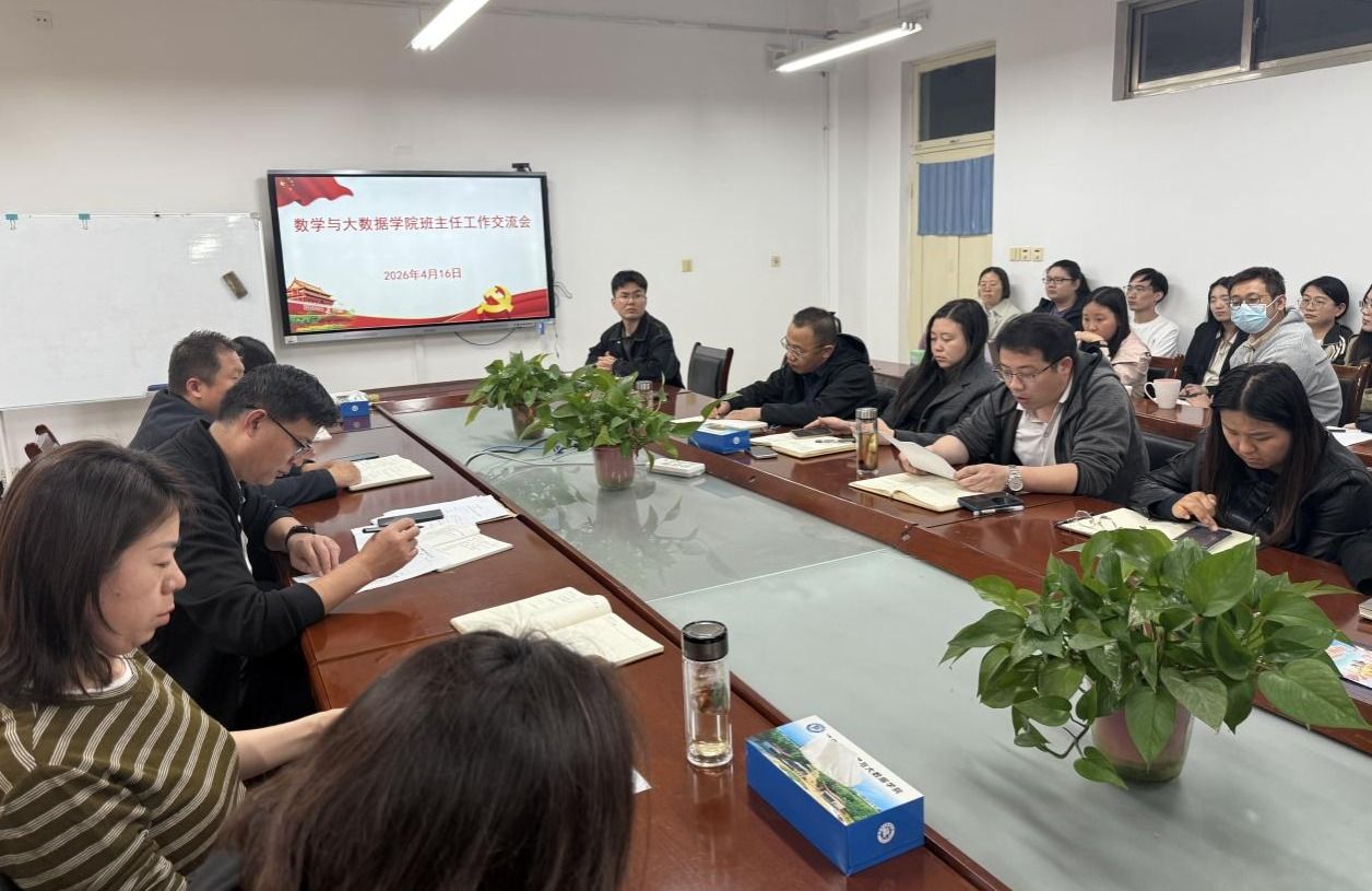为进一步强化班主任队伍建设、提升班级管理实效、凝聚全员育人合力,4月16日下午,数学与大数据学院在8A213会议室召开班主任工作交流会。学院党政领导班子成员、全体教职工参加会议。