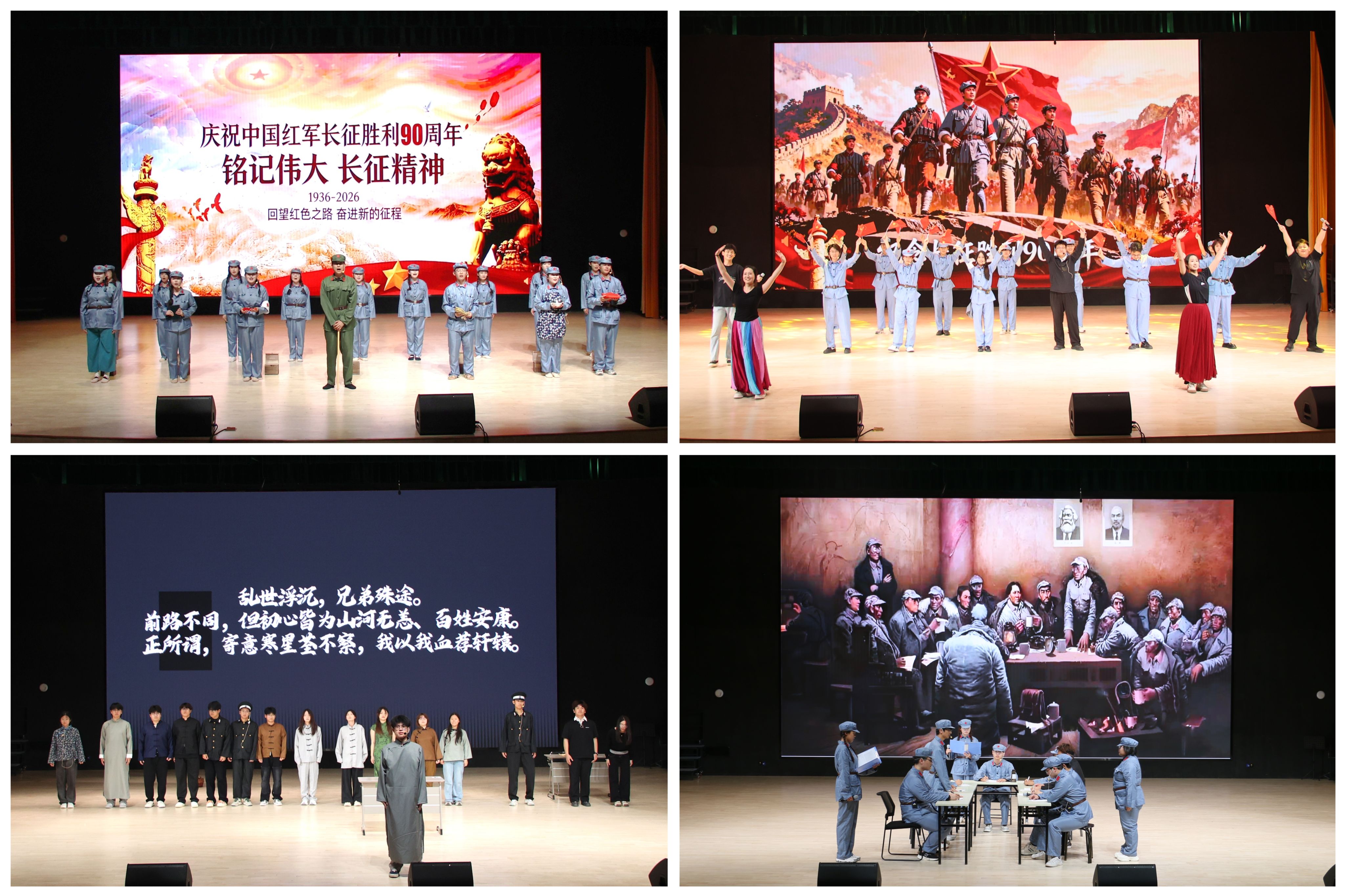 本次大赛自启动以来,获得了各二级学院大力支持。经过初赛、复赛,共有八支队伍脱颖而出,会师决赛舞台。决赛现场,各参赛队伍紧紧围绕“长征精神”这一主题,与历史对话,与先辈共情,以极具感染力的舞台表演,带领观众共同追溯那段波澜壮阔的岁月,生动诠释了革命先辈坚定的理想信念、深厚的家国情怀与无私的奉献精神。最终,教师教育学院《箱子》、音乐学院《忆长征烽火 展青春担当》荣获一等奖;经济管理学院《转折·遵义》、数学与大数据学院《山河赴》荣获二等奖;生命科学与工程学院《一盏马灯》、计算机科学与安全工程学院《长征》、物理与电子工程学院《风雪归途,红巾不变》、资源环境与安全工程学院《红途测影 薪火传航》荣获三等奖。