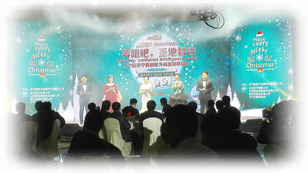 12月16日晚,由济宁市高新区管委会主办、济宁市翻译协会及济宁学院外国语系协办的济宁市高新区“外商圣诞联谊会”在济宁科苑会馆隆重举行。济宁市人民政府副市长张继民,济宁市人大第一副主任周洪,济宁市高新区党政负责同志白山、尤卫平等领导参加。我校外国语系主任、济宁市翻译协会副会长杨楠等师生代表17人参加联谊会。