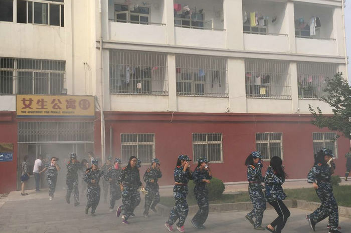9月22日下午,随着一阵刺耳的“火警”警报响起,女生公寓8号楼冒出滚滚“浓烟”, 2017级的同学们纷纷用湿布捂住口鼻,身体保持低姿,沿着安全疏散出口有秩序地疏散,大约3分钟,楼内近1200名新生安全撤出公寓。疏散演习还分别在男生公寓1号楼举行。此次疏散演习活动顺利完成。