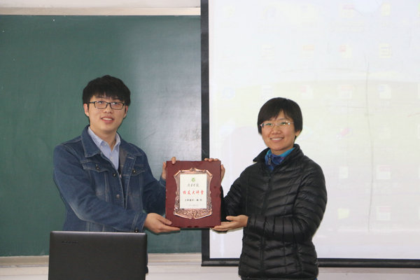 陈浩校友以《我的大学》为题,回顾了自己美好的大学学习生活,重点讲述了对自己成长最有帮助的学校创新实验室学习的岁月和参加多次大学生科技比赛的经历。他用诙谐幽默的语言分享了成功成才的经验,进一步增强了同学们学习专业课程的热情。报告主题鲜明、内容丰富、深入浅出,为大学生如何明确发展目标,丰富知识体系,提升自身素质进行了一场生动鲜活的教育。