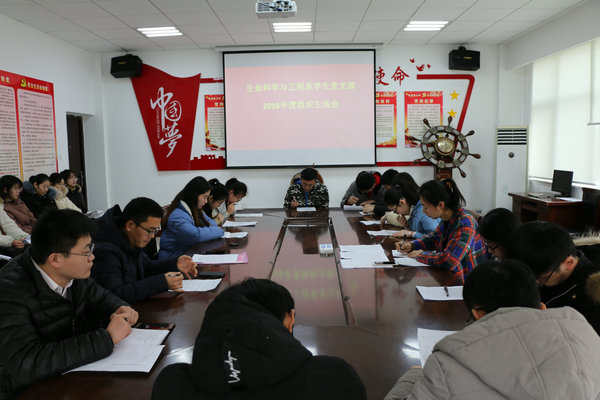 2019年1月9日上午11:00,生命科学与工程系学生党支部在理科楼A220召开了2018年度组织生活会。会议由系党总支副书记、学生党支部书记孔翠主持,支部全体党员参加了此次会议。