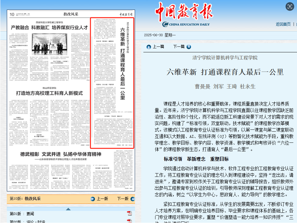 中国教育报:济宁学院计算机科学与工程学院六维革新打通课程育人最后一公里